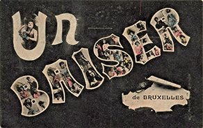 Als Weiterentwicklung gab es das Layout auch mit koloriertem "Bonsoir", Mond und Sternen. Der Städtename für Bruges ist wieder in gold nachträglich aufgedruckt.