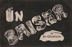 As variation, the layout also existed with colored "Bonsoir", moon and stars. The city name for Bruges is again printed in gold afterwards.