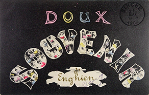 Neben den "Bonsoir" (guten Abend) brachte M.Marcovici noch weitere Karten mit den damals beliebten gefüllten Buchstaben heraus (teilweise koloriert).