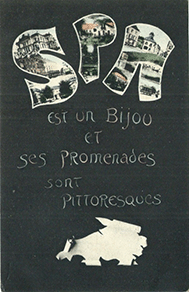 Für Spa gab es noch eine weitere Karte mit einem Spruch "Spa est un bijou et ses promenades sont pittoresques"