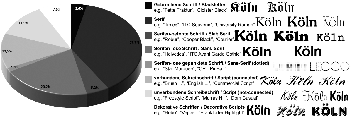 Verteilung nach Schriftkategorie des Ortsnamens / Breakdown by Font Class of the Location name