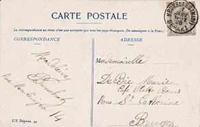 Auch eine weitere Kartenserie beweist, dass hinter "C.V." der Verlag "C. Van Cortenbergh" steckt: eine Serie mit geprägten Bilderrahmen aus Belgien. Bei manchen ist "C.V. Déposé" angegeben, bei manchen nichts, bei mind. einer "Printing: C. Van Corthenbergh Fils". / Another series of cards also proves that the publisher "C. Van Cortenbergh" is behind "C.V.": a series with embossed picture frames from Belgium. Some show "C.V. Déposé", some nothing, at least one "Printing: C. Van Corthenbergh Fils." |