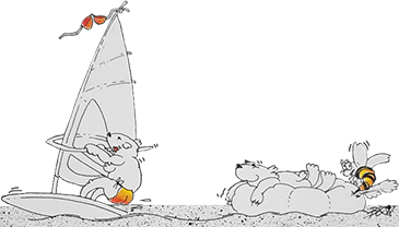 Variation von Design #6 mit gleicher Schriftart "Carlton" - nun mit einer Murmeltier-Frau als Surferin ergänzt. /