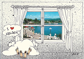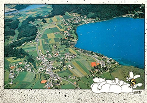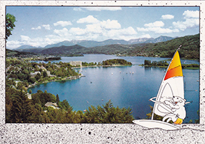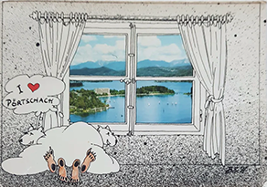 Another card featuring a silhouette was issued by Maria Wörth on Lake Wörthersee.