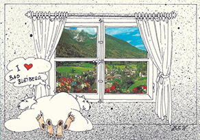 Die Grafik der Murmeltier-Frau auf einem Surfbrett ist von "Wiesner & Borioni, Grafik Montabella, St. Moritz", auch wenn diese nicht auf der Karte selbst erwähnt sind.
