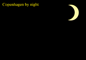 Die Karte "Denmark by night" gab es auch im Großformat (17,9 cm x 12,9 cm). Der Text und der Mond wurden entsprechend hochskaliert./