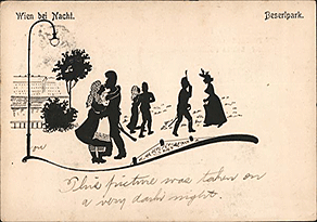 ![]() Votivpark. Gruss aus Wien bei Nacht. (B.K.W. I. 943-1) |