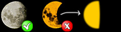 Remark: The representation of the phases of the moon is very rarely correct. For the classification, the visible width was divided by the diameter, and assigned to the corresponding phase (correct day).