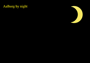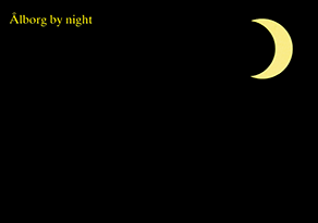 Die Karte "Denmark by night" gab es auch im Großformat (17,9 cm x 12,9 cm). Der Text und der Mond wurden entsprechend hochskaliert./